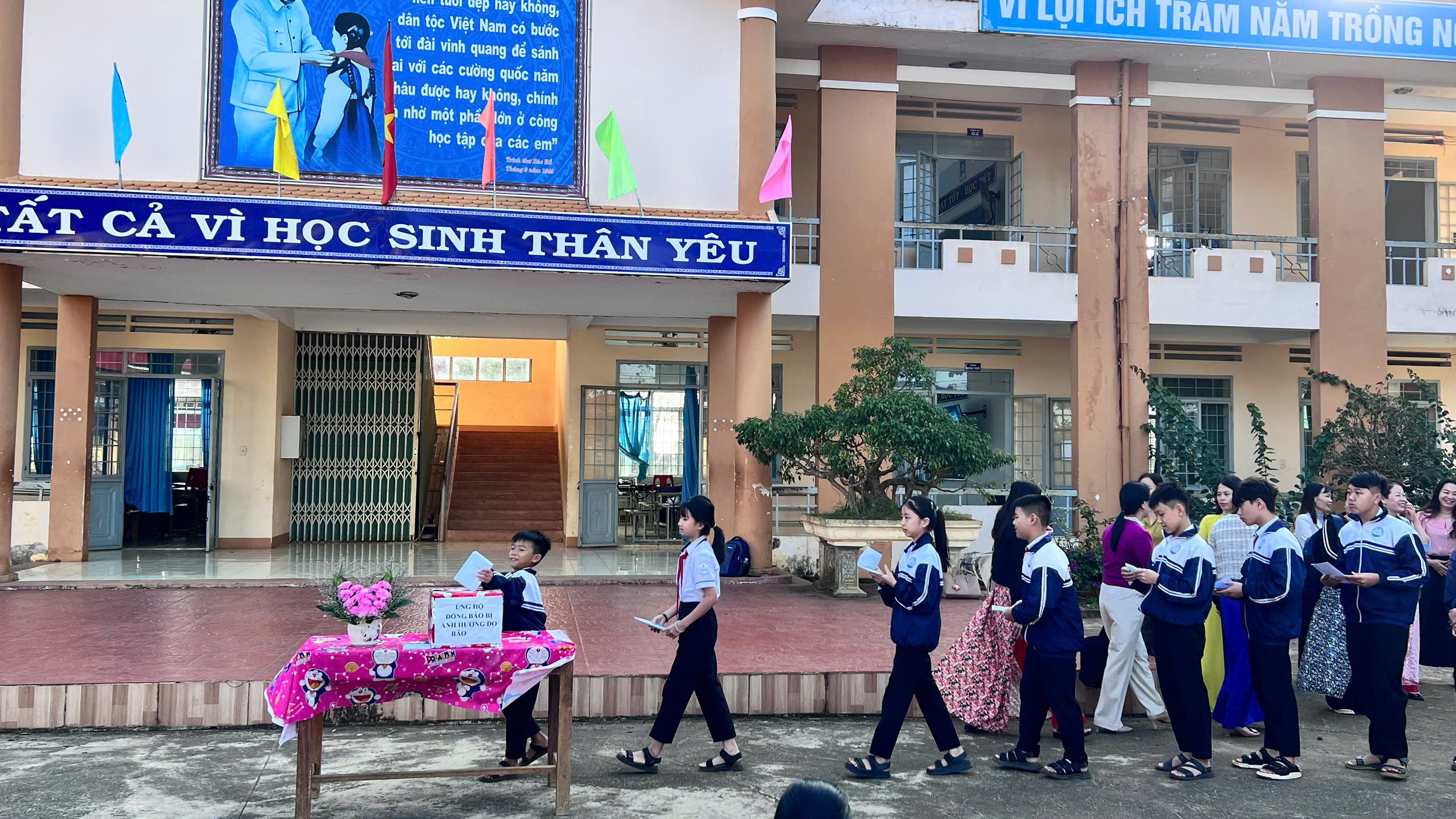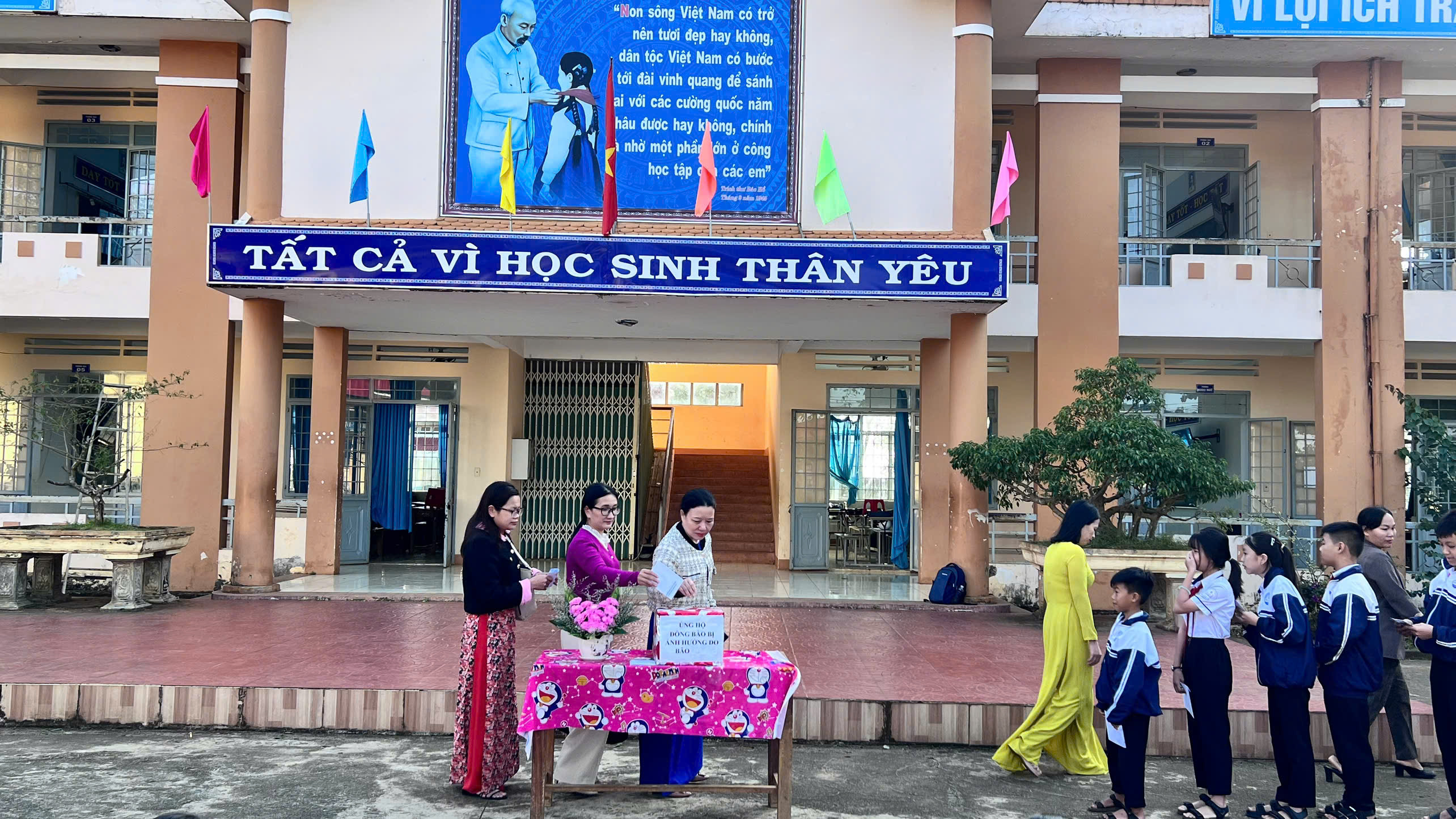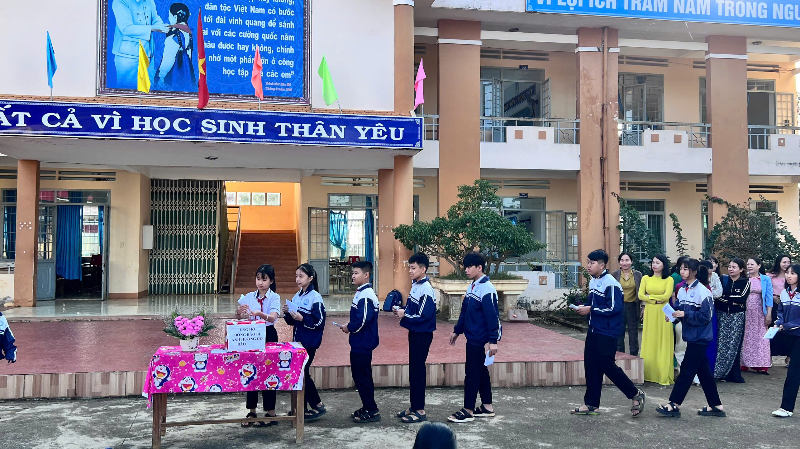 3. Giáo viên và học sinh trường THCS Nguyễn Bỉnh Khiêm chung tay quyên góp ủng hộ vùng lũ lụt