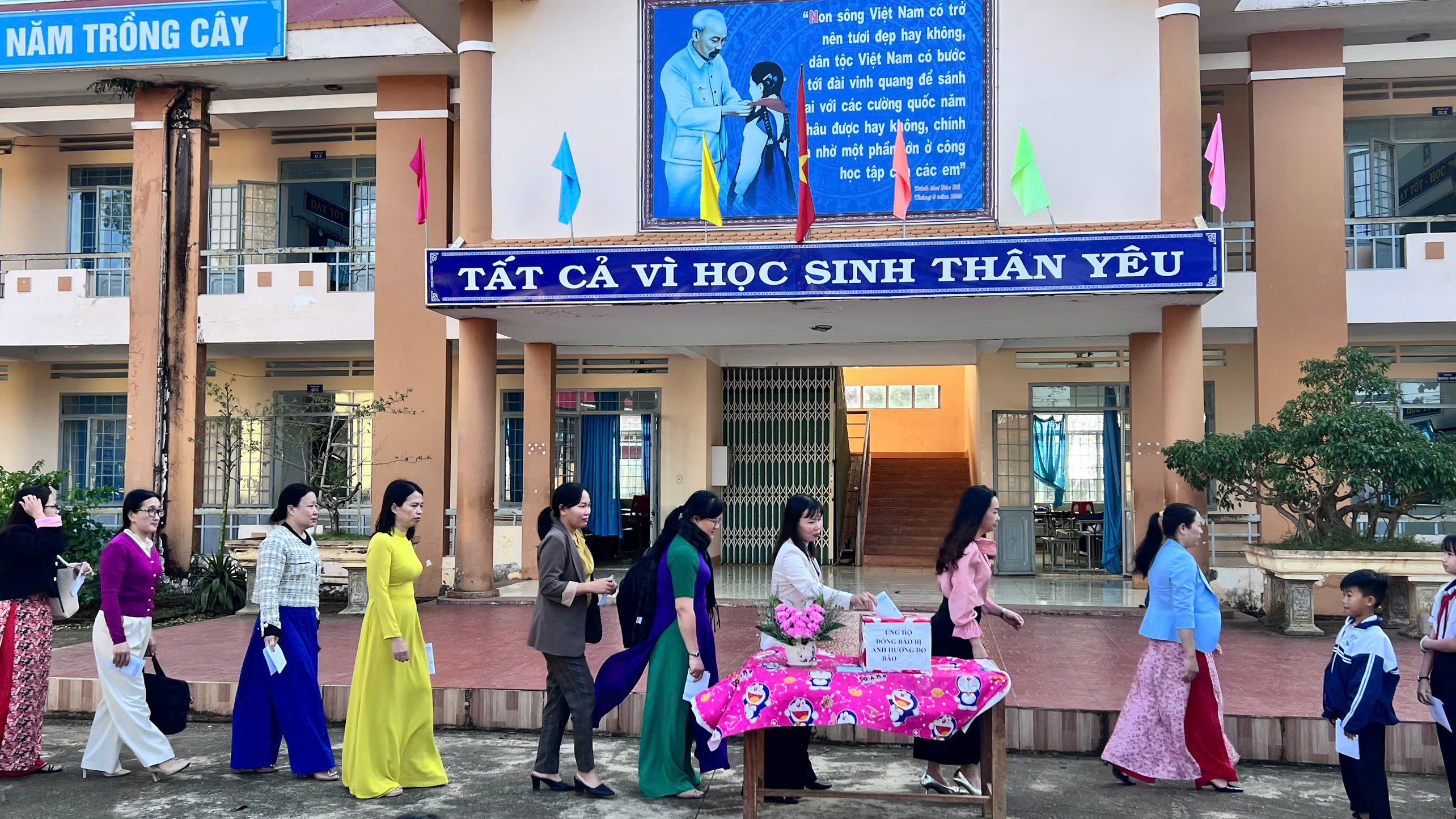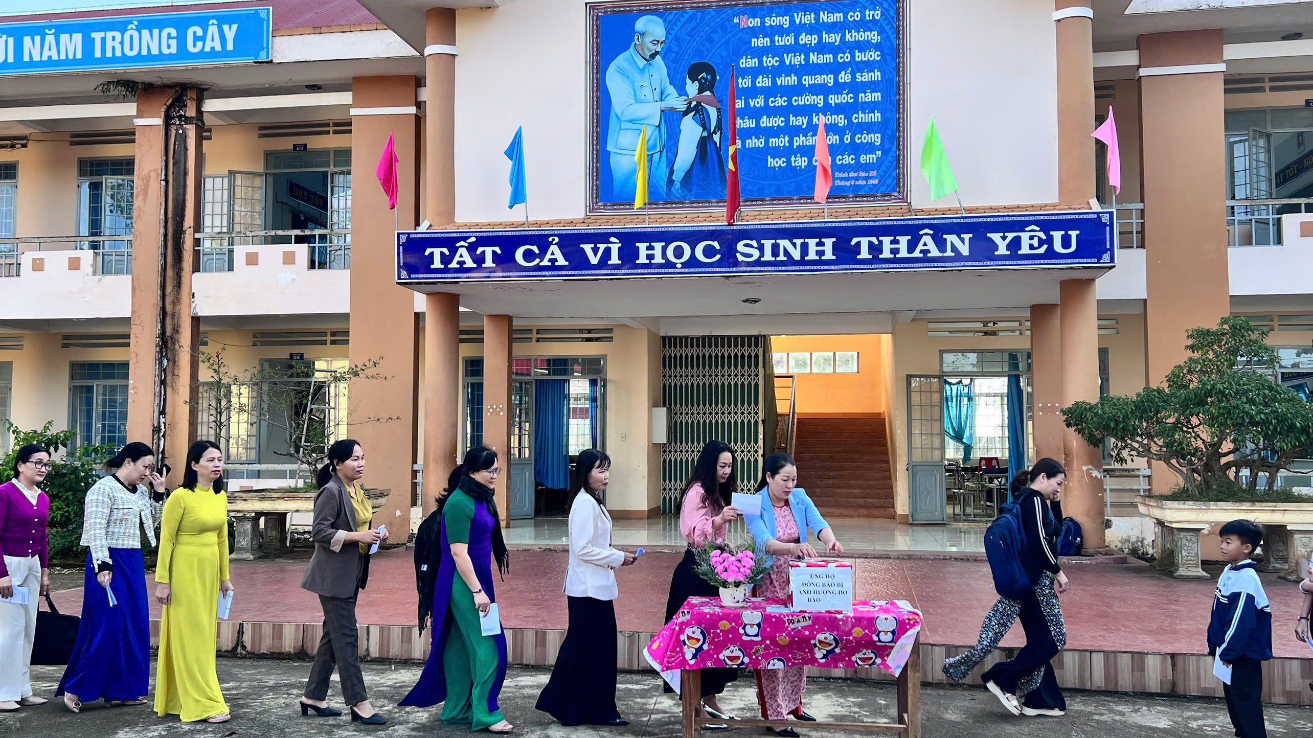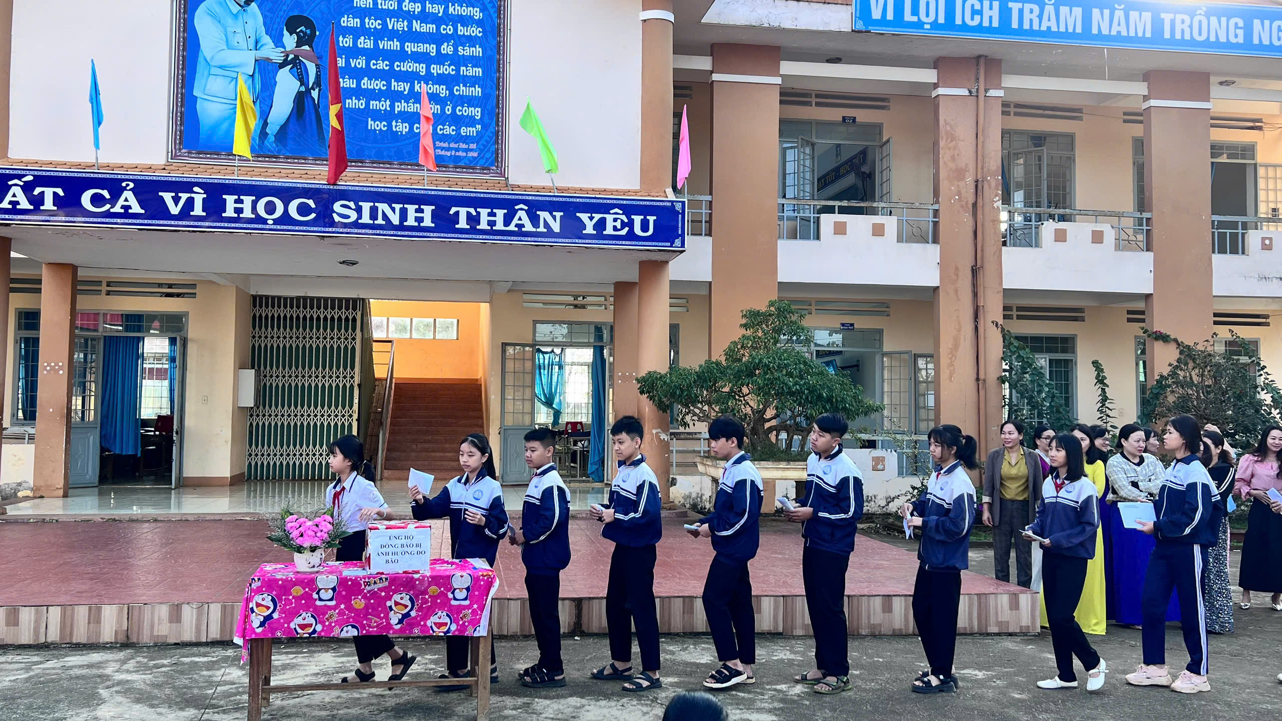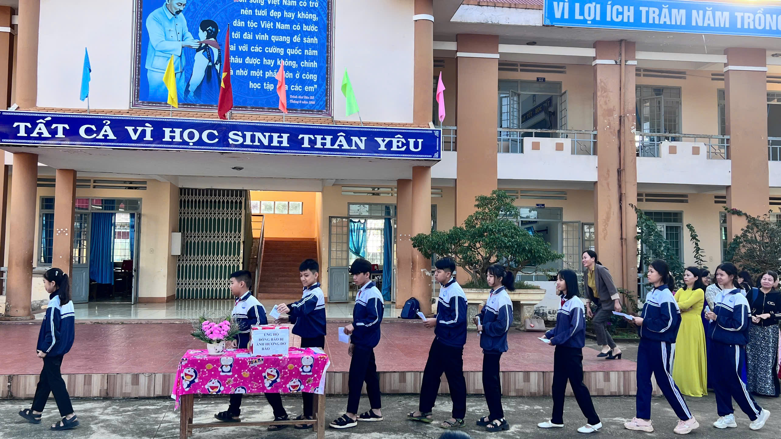 3. Giáo viên và học sinh trường THCS Nguyễn Bỉnh Khiêm chung tay quyên góp ủng hộ vùng lũ lụt