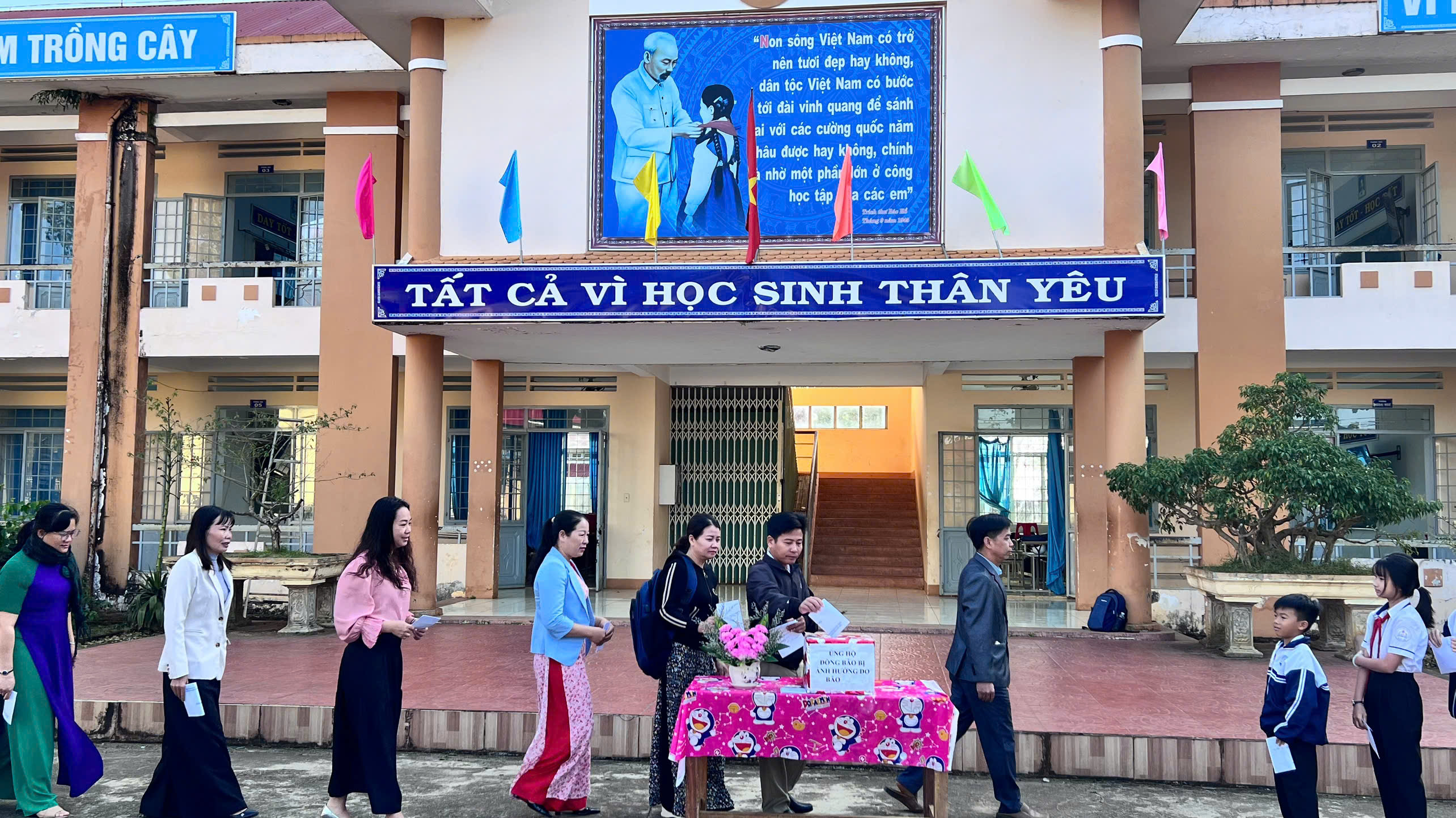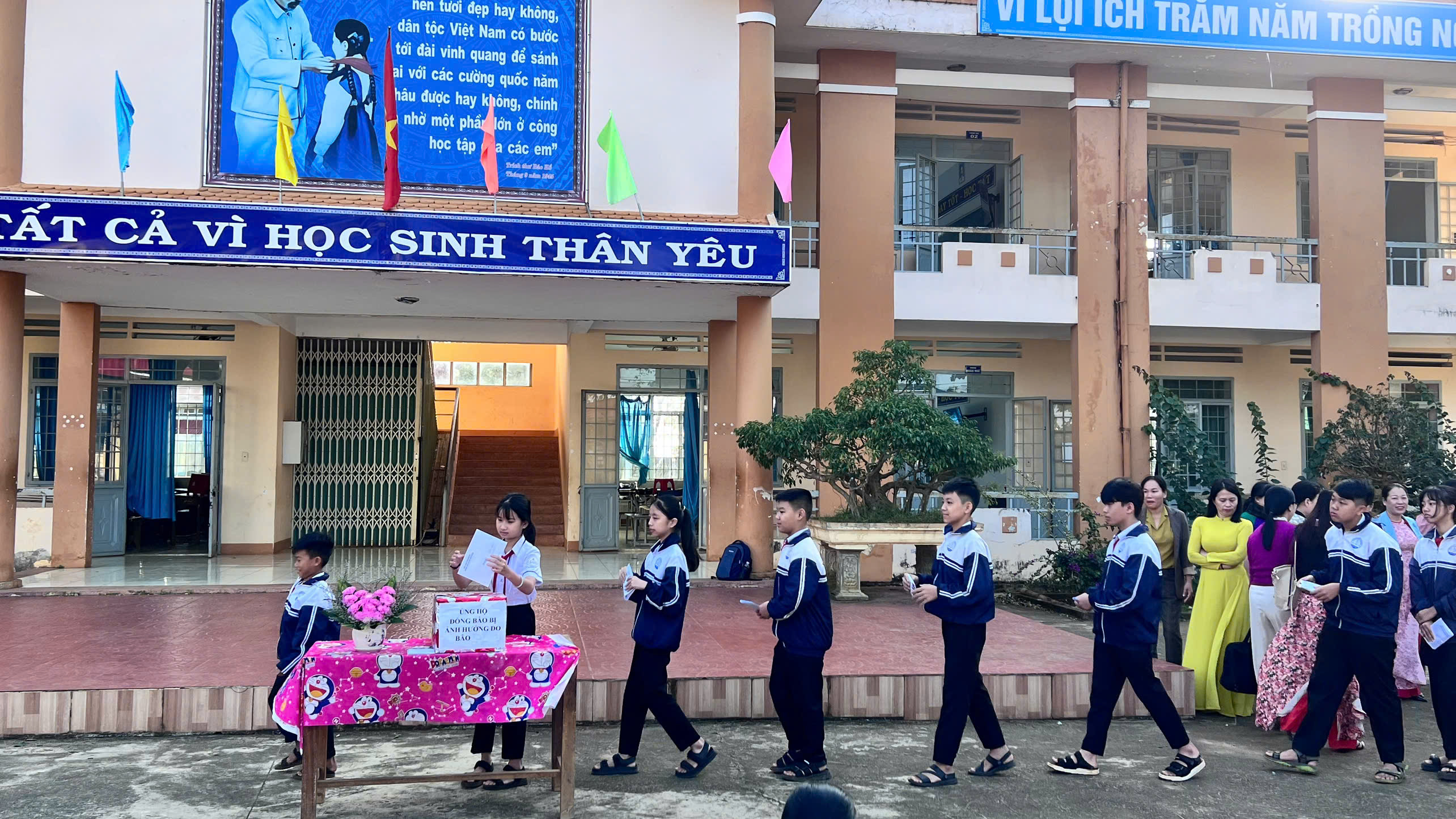 Giáo viên và học sinh trường THCS Nguyễn Bỉnh Khiêm chung tay quyên góp ủng hộ vùng lũ lụt